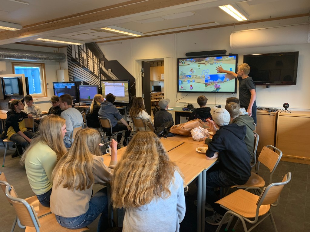 Årets siste skoleklasse på Teknisk Senter. I dag var det en elev i 8e som hadde vunnet en time med vafler og aktiviteter for hele klassen.