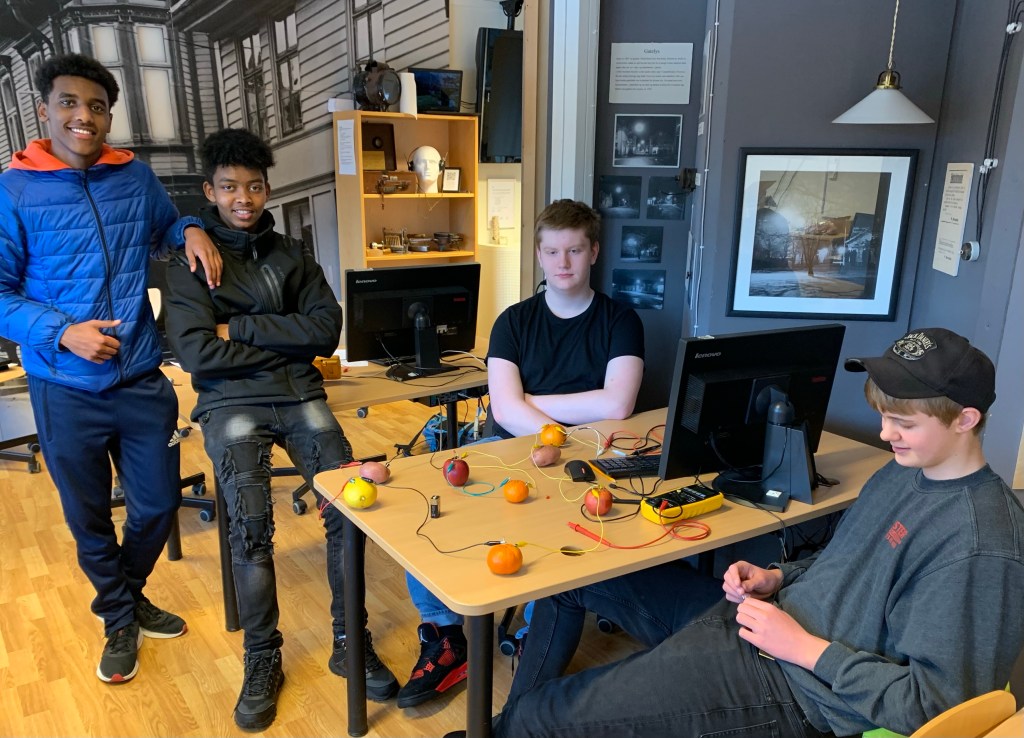 I valgfagstimene har vi seriekoblet forskjellige spenningskilder. Vi fant ut at det er omtrent like mange volt i en sitron som i et vanlig AA- batteri.