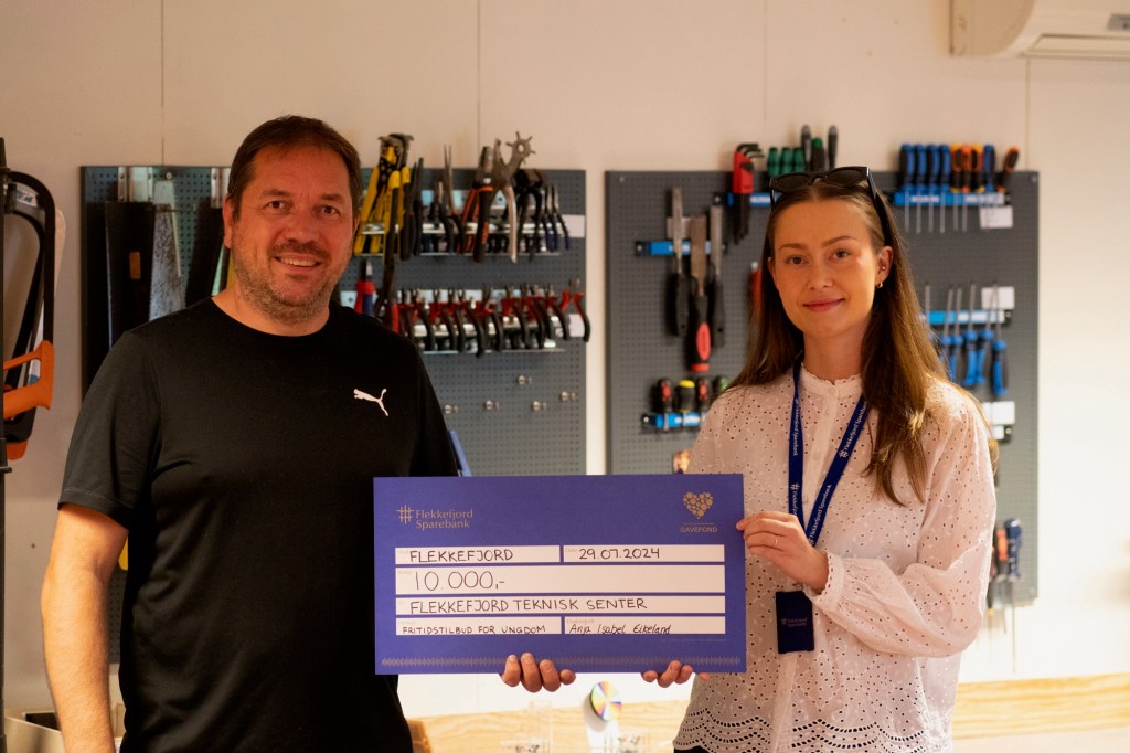 Anja Isabel Eikeland ved Flekkefjord Sparebank valgte å gi kr. 10.000,- til kveldsklubben på Teknisk Senter. Vi er veldig takknemlige for det gode samarbeidet med vår lokale sparebank.
