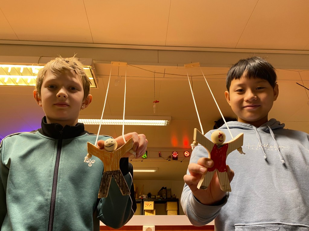 I dag har vi besøk av klasse 5a fra Sunde skole. Vi har bygget en klatremann og programmert en elektrisk mus.